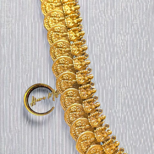 92.5 Silver, Premium Gold plated Sri Lord Balaji with perfect detailing Nacklace set with Lord Mahalakshmi studded with Mini Mozos with red and white premium Nano Mini CZs along with natural green beads.