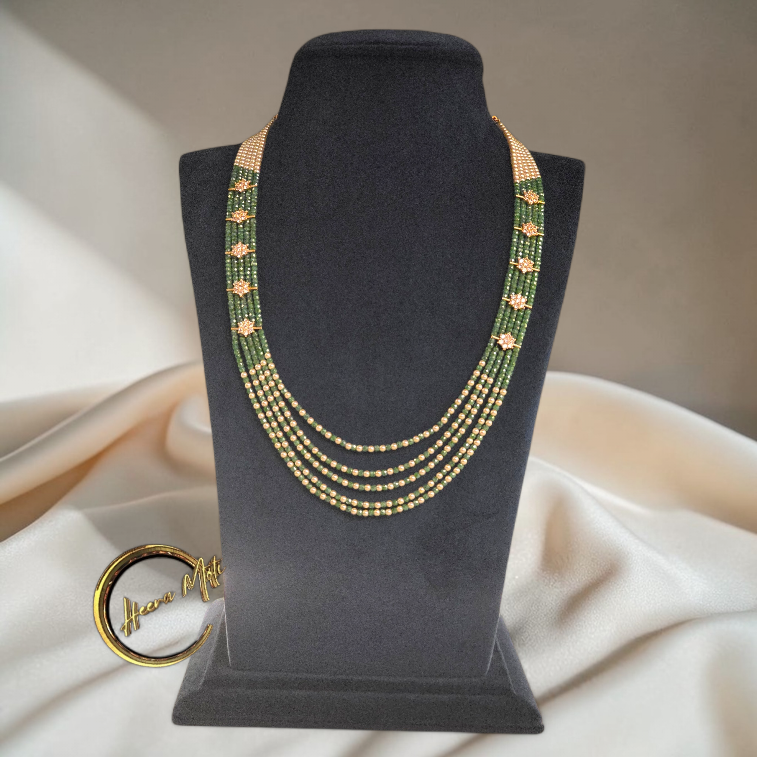 Green Opec beads paired with Swvaroski Beads to create a elegant color story. The sparkle of the faceted Orange Opec contrasts beautifully with the smooth Swvorski beads, making this combination perfect for necklaces 5 layered statement pieces. Ideal for festive designs, spring palettes, and modern handcrafted jewelry.