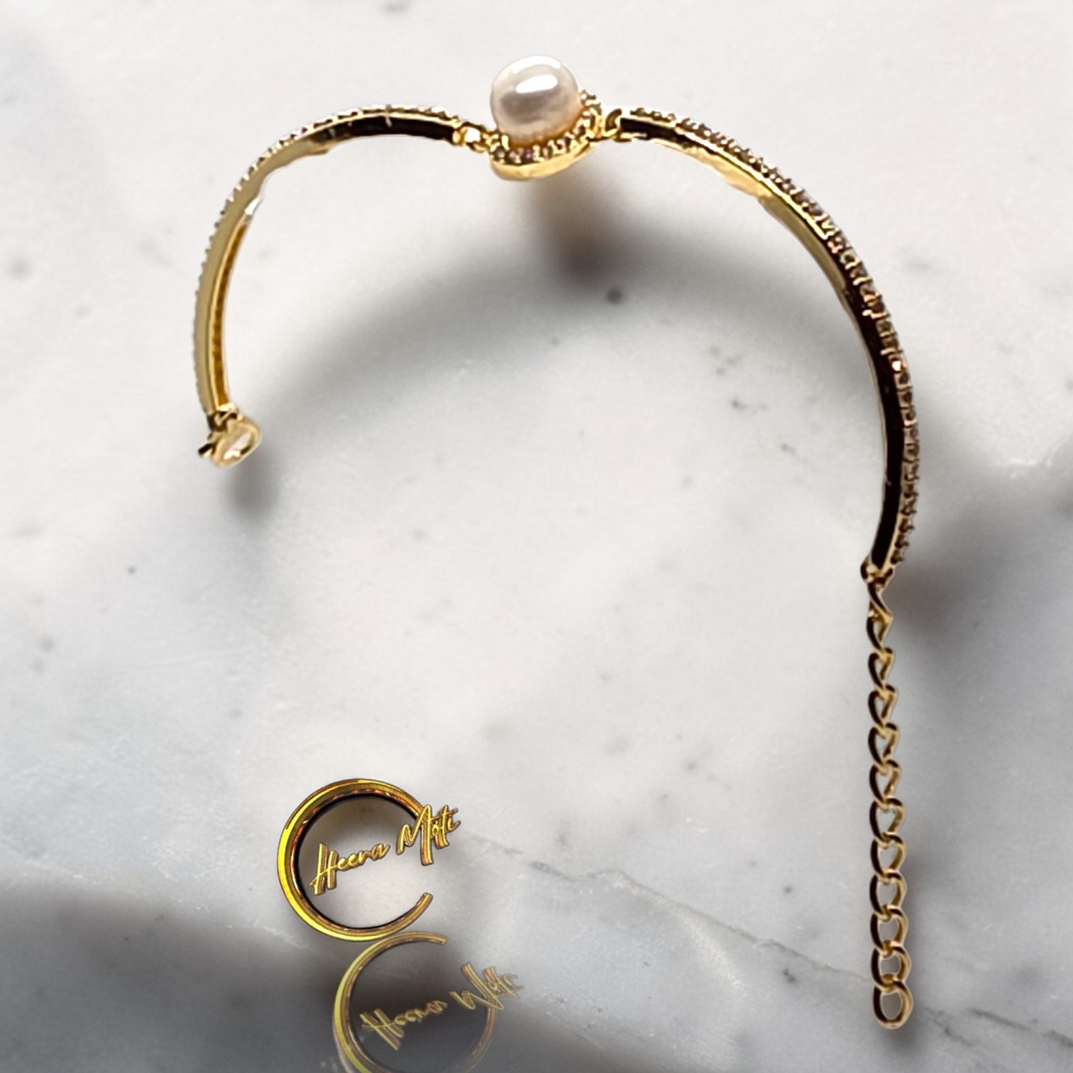 Cut bangle adjustable Bracelet with Real Pearl centred with white CZs
